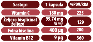 Željezo bisglicinat ima do 75% veću bioraspoloživost i 4 puta bolju apsorpciju od željezo sulfata.